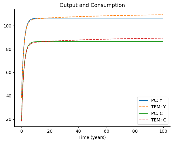 Model PC is simply too minimal to express those dynamics. It has no firms, no profits, and no ecological system.